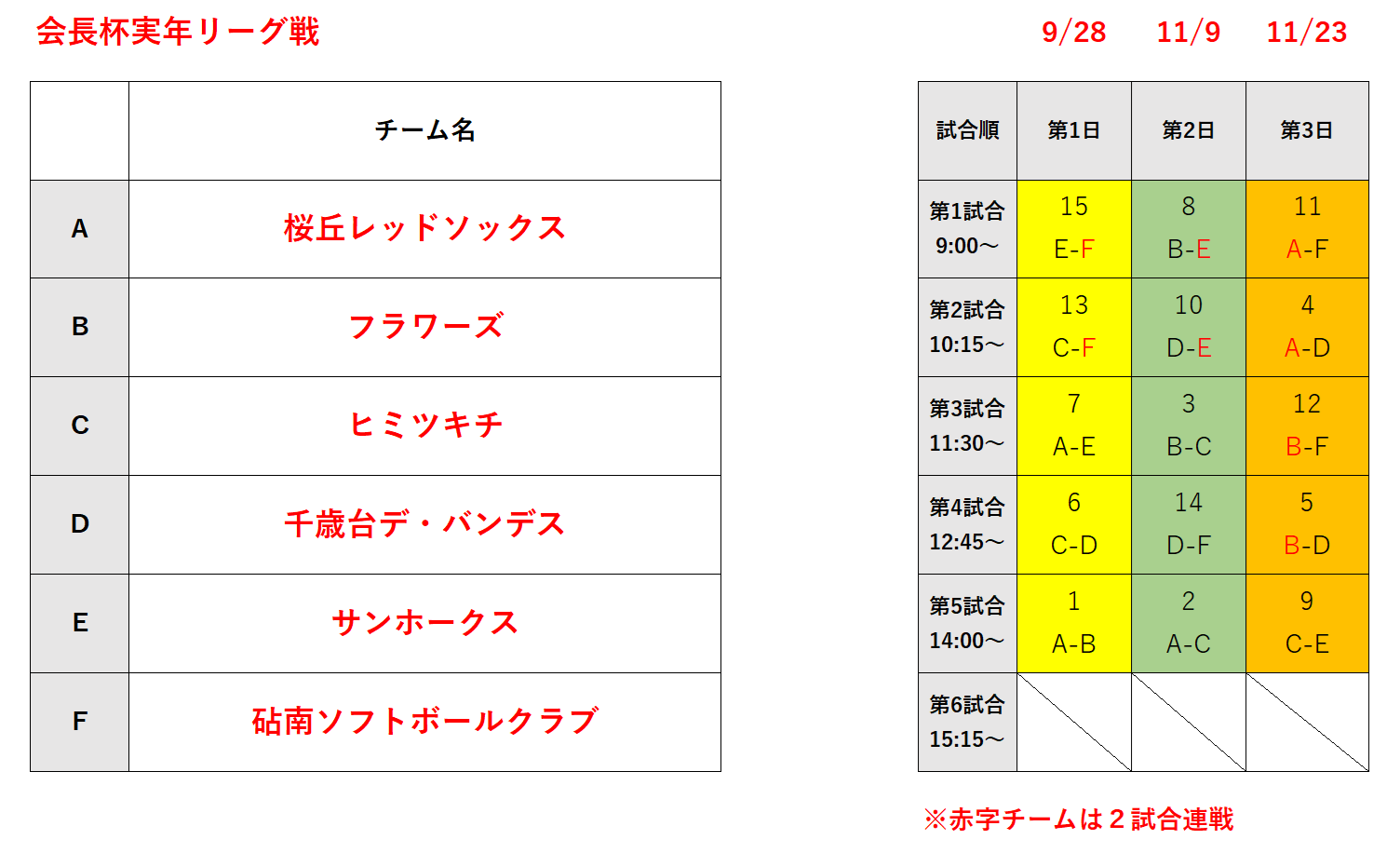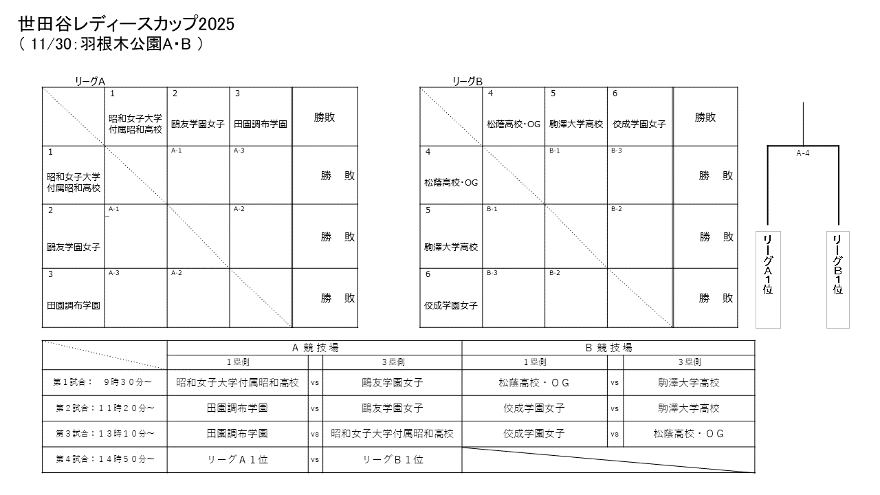 1位チームは、2026年度東京都一般社会人春季大会の出場権あり